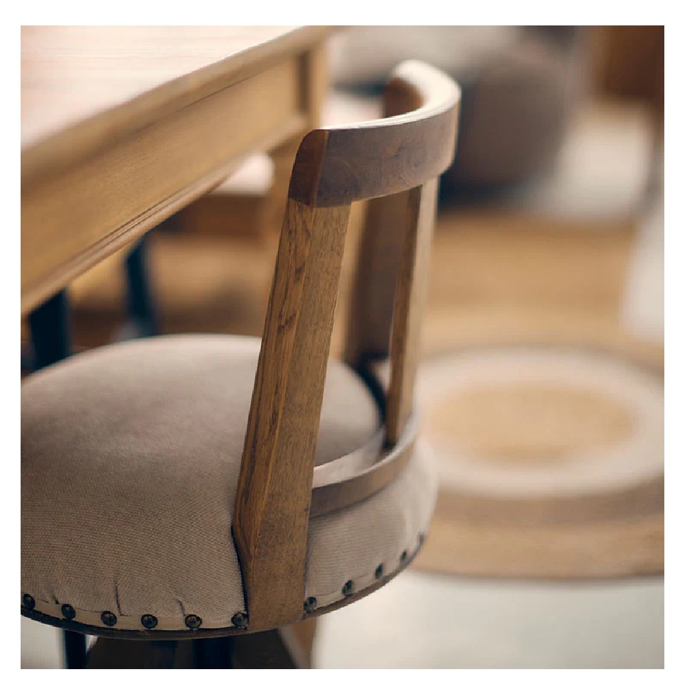 本体: ファブリック / ホワイトオーク無垢材 (ラッカー塗装) / スチール / 鋳鉄 / 鋲 内部: ウレタンフォーム / Sバネ