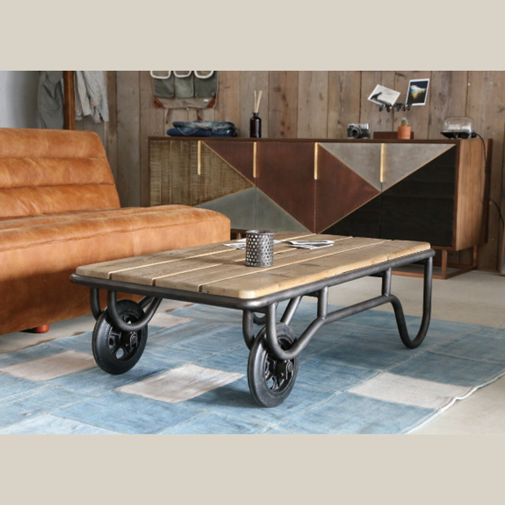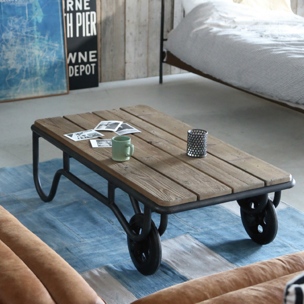 杉古材 ワックス仕上 / スチール / ラバータイヤ
