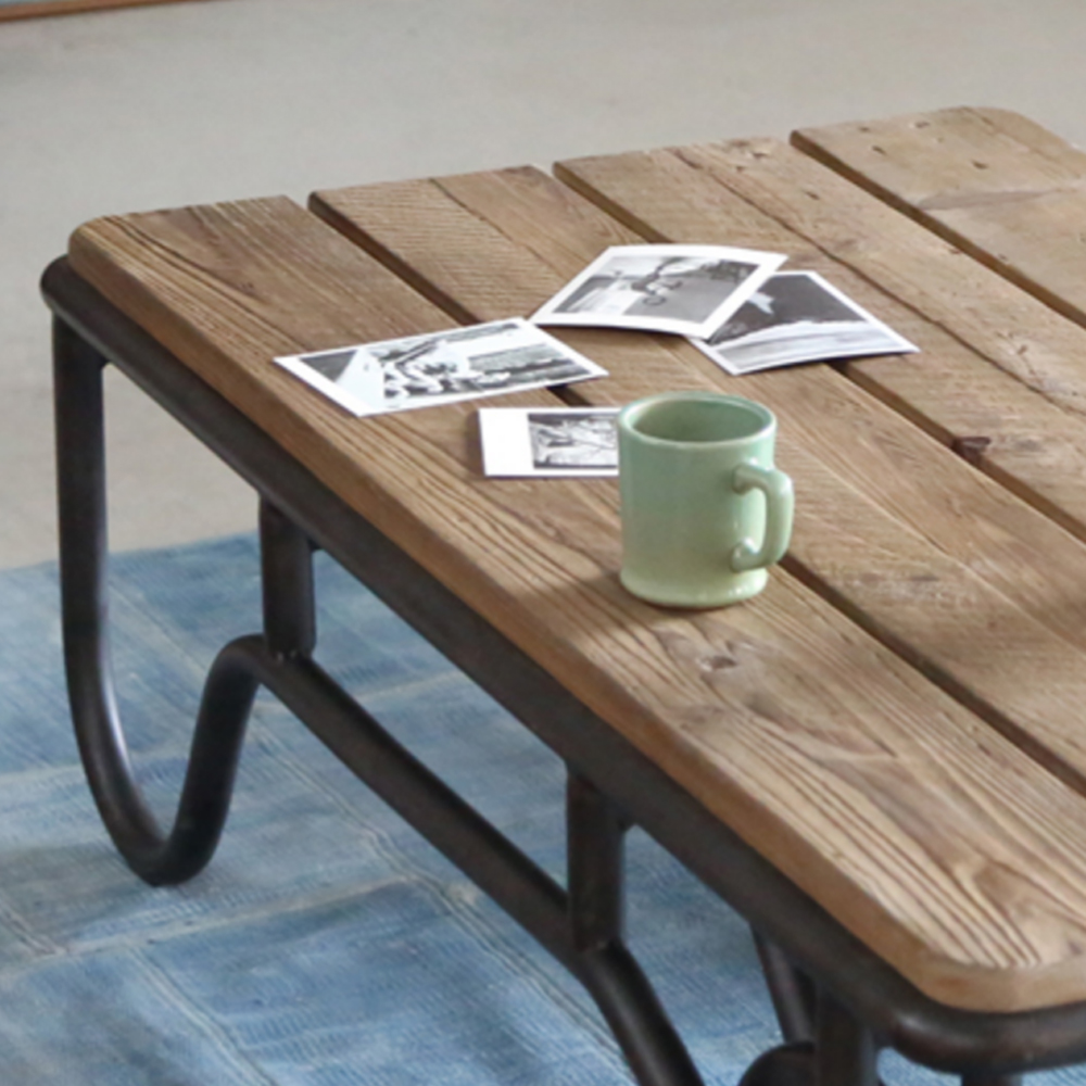 【カシャコーヒーテーブル】古材の質感を存分に味わえるシンプルなシリーズです。 使用している古材は、独特の風合いを残すため、色ムラや釘跡、傷等を味わいとして残しています。 同じものは一つとしてない、古材の個性をお楽しみください。