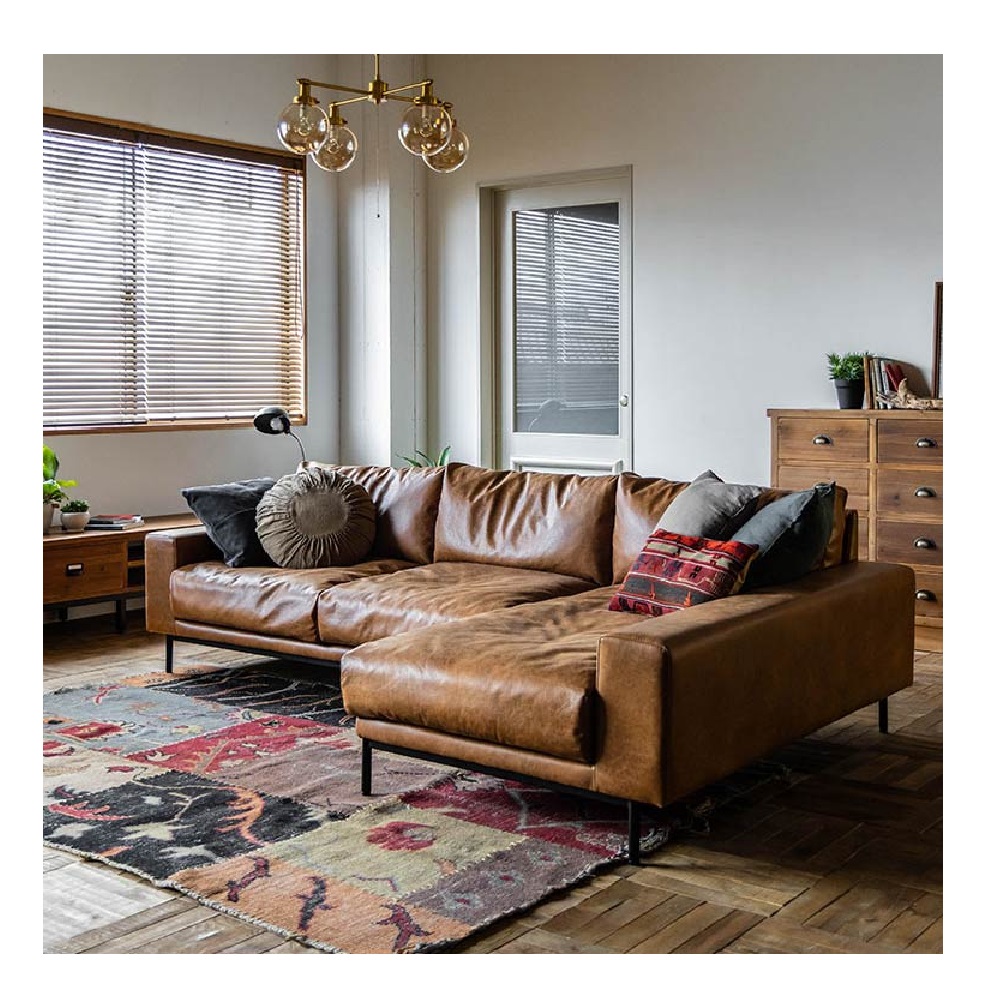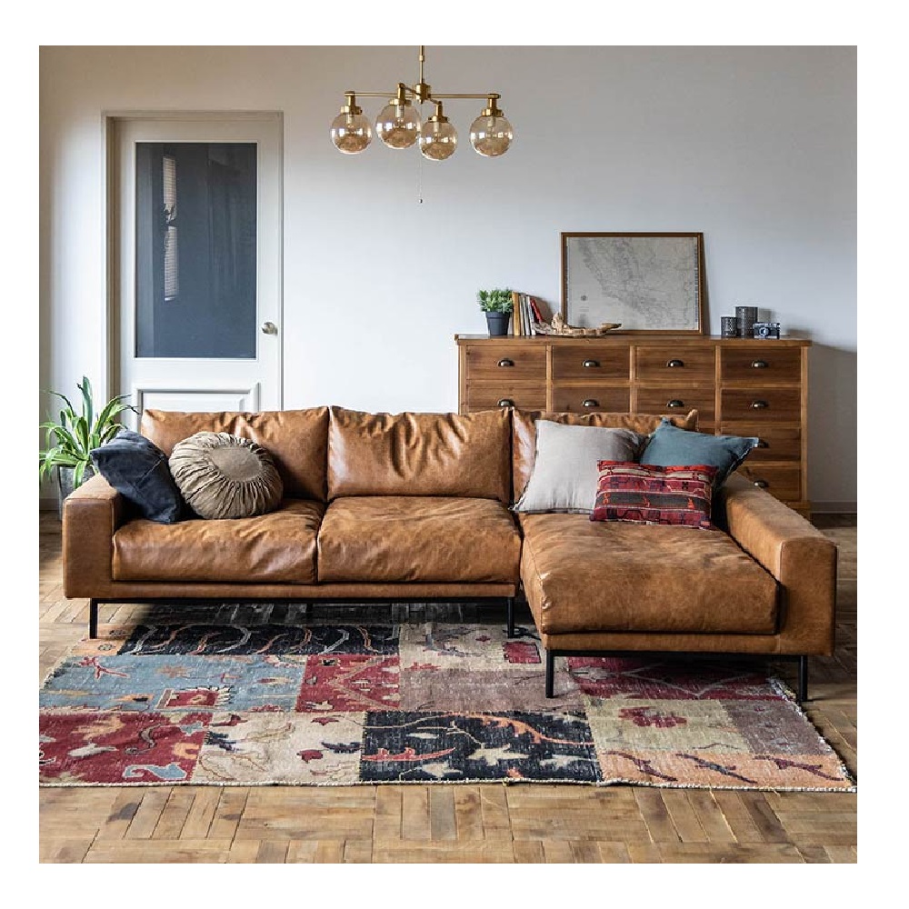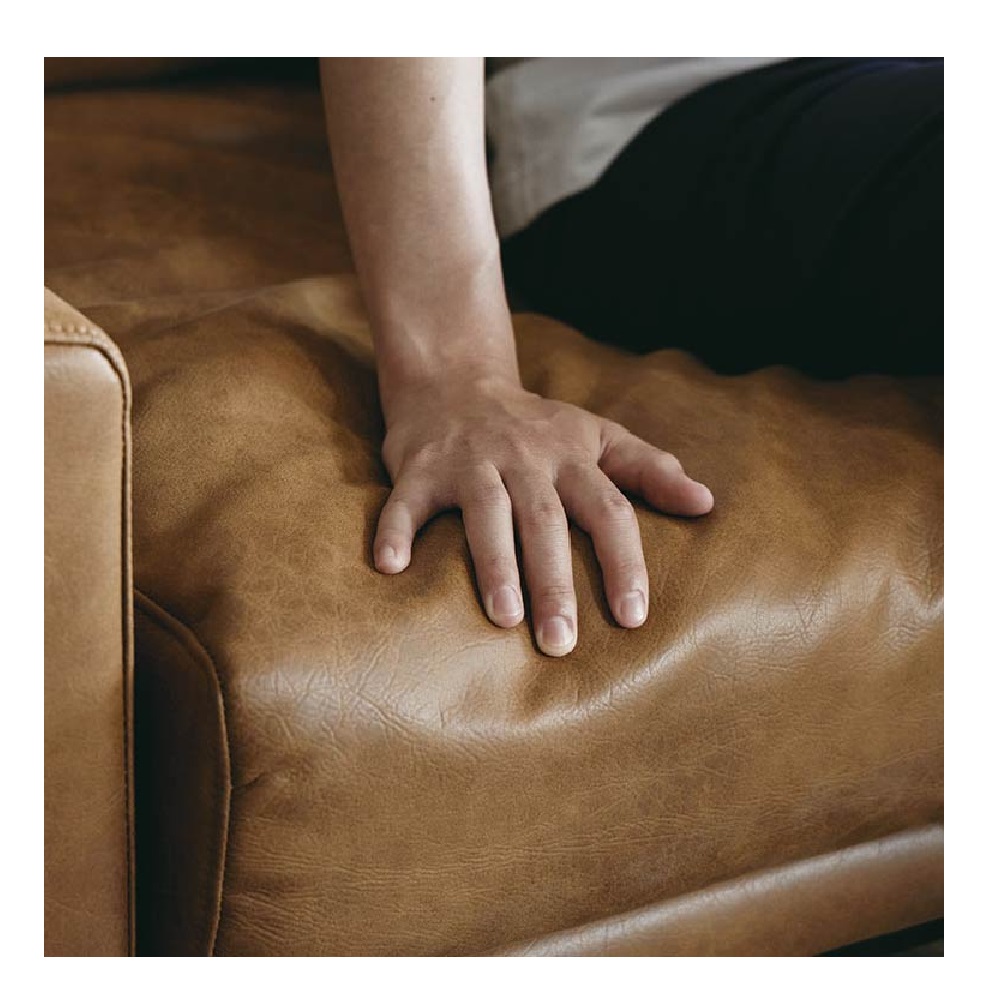 【プルートソファ カウチ スーパーレザーテックス】 たっぷりとフェザーを使い、くったりと沈み込む座り心地が特徴のソファです。 プルートソファの張地には、牛本革の質感や風合いをリアルに再現した『スーパーレザーテックス』という素材を使っています。 スーパーレザーテックスは、見た目の上質さに加えて『摩擦や引き裂きに強い』『汗や紫外線による変色に強い』など優れた機能性をもち合わせています。また通気性がよいので熱がこもりにくく、サラッとした触り心地なので、季節を問わずに快適に使うことができます。革製品よりも扱いやすいので、小さなお子様がいらっしゃるご家庭にもおすすめです。