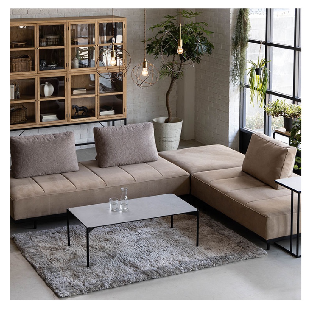 【グローソファ スツール】 ベースのソファと背クッションを自在に組み合わせて、様々なシーンやレイアウトに対応するモダンデザインソファ。クッションの生地は表面が起毛したスエード調の滑らかな肌触りのSUD生地、表面に柔らかい肌触りのTIM生地、独特な凸凹の質感で立体感のあるGL生地の3種類からお選びいただけます。