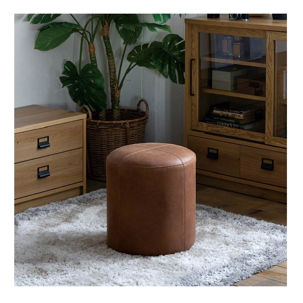 【ドットスツール400】上質な厚革風の張地を使った、ブラウンとブラック2色展開のスツールです。 ゆったり座れる座面広めの600サイズと、コンパクトな400サイズの2型をラインナップ。 布の張り合わせとステッチがデザインアクセントとなった、シーンを選ばず使えるアイテムです。