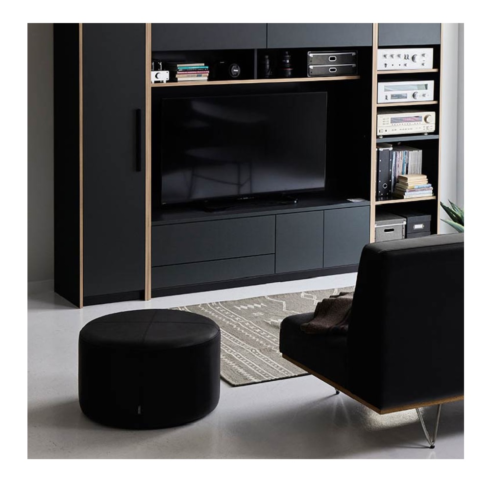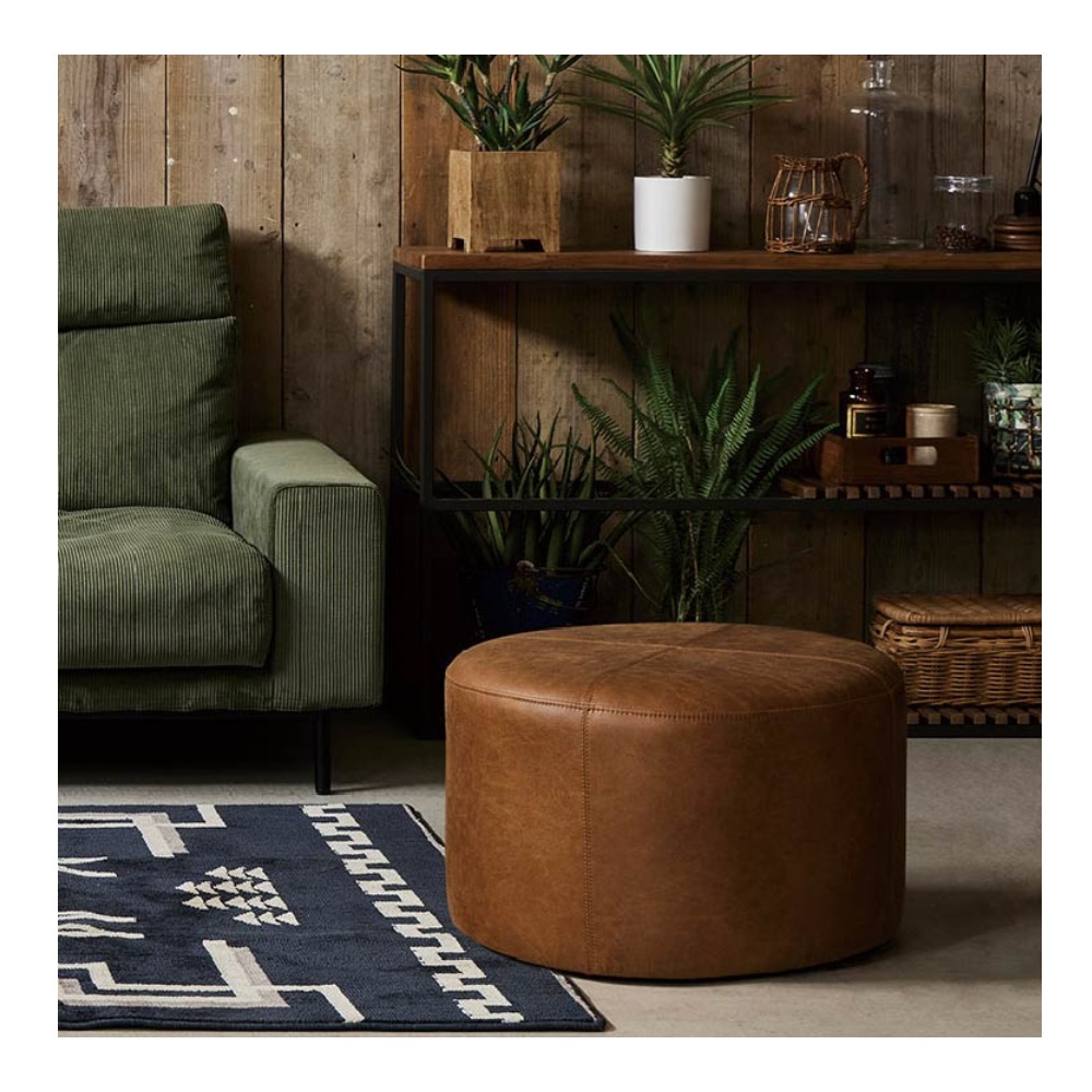 【ドットスツール600】上質な厚革風の張地を使った、ブラウンとブラック2色展開のスツールです。 ゆったり座れる座面広めの600サイズと、コンパクトな400サイズの2型をラインナップ。 布の張り合わせとステッチがデザインアクセントとなった、シーンを選ばず使えるアイテムです。