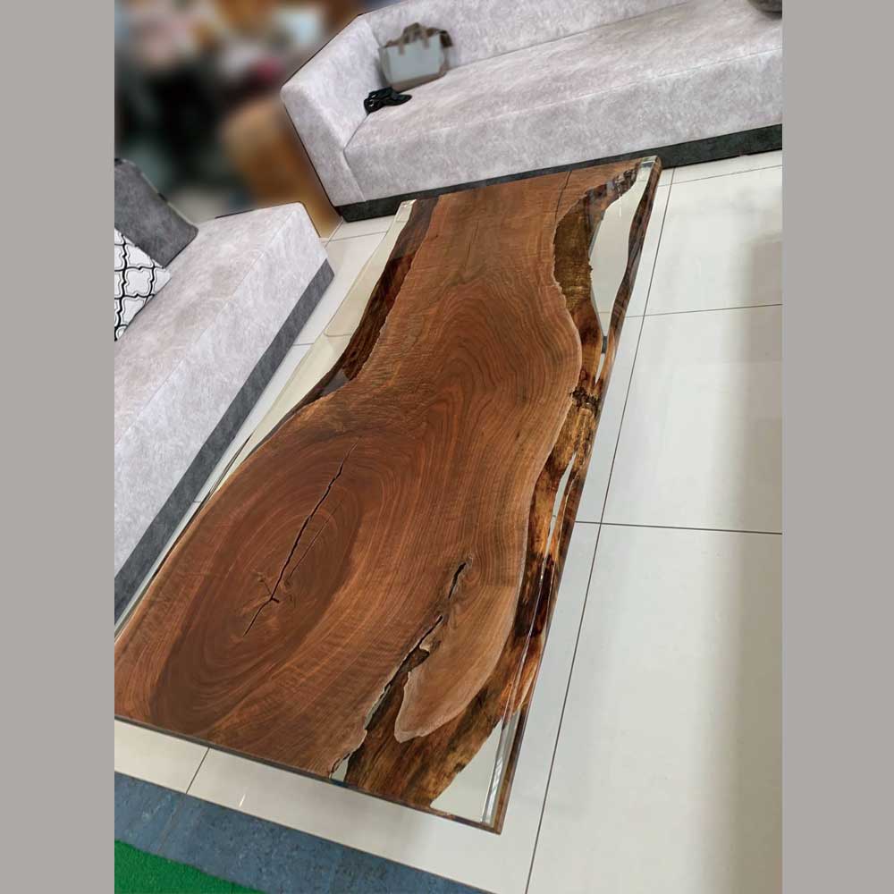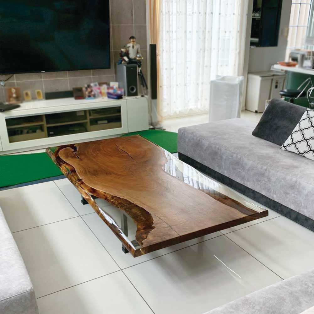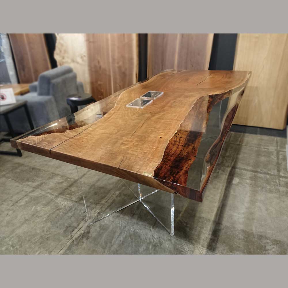・クリアレジン/ウォールナット天板 W1900mm ・コンビスチール脚BK ・アクリル V型脚